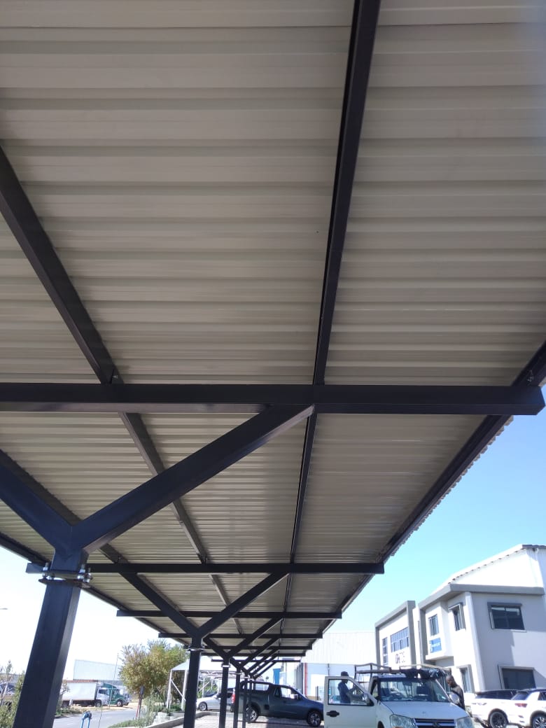 As with carports and shadeports, the structures are pre-fabricated and powder-coated in our workshop, transported to site and installed. Our structures can include a zinc/chrome covering at the top which allows for future solar panels to be fitted or solar panels fitted directly to lipchannels.